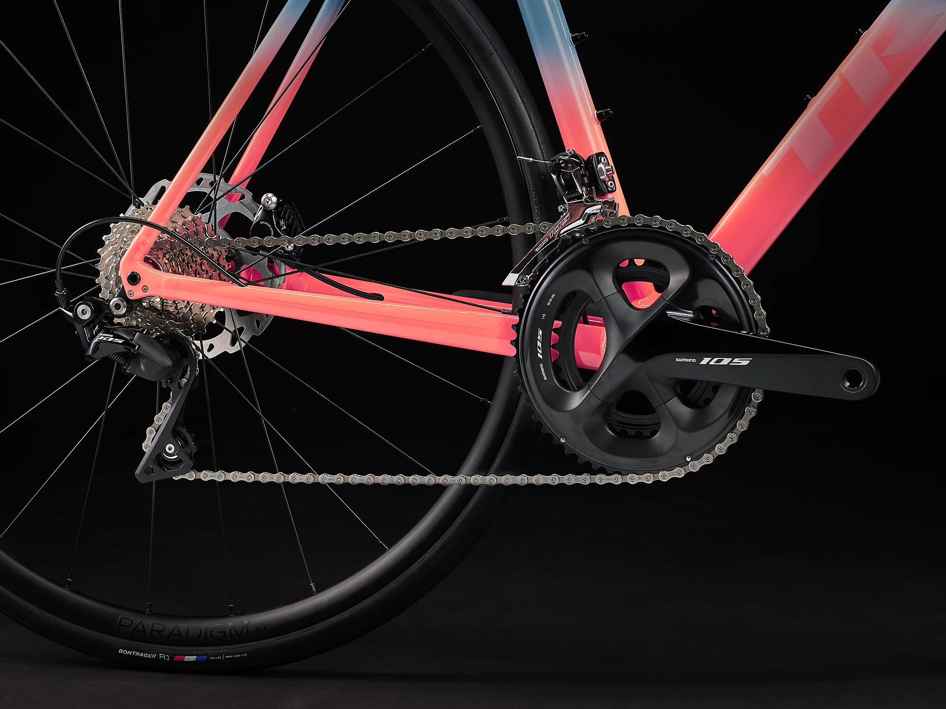 | Felgen | Bontrager Paradigm SL, Tubeless Ready, 24-Loch, 21 mm Innenweite, Presta-Ventil |